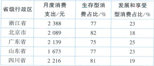 创新题 新情境 (2024福建三明一中月考)农民工在城市的消费受自身和外界环境多种因素影响。改善农民工福利状态,释放消费潜力,对推动我国新型城镇化进程具有重要作用。下表示意我国部分省级行政区农民工城市消费情况。据此完成下面两题。