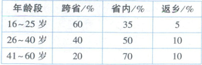 创新题 新考法 (2025福建福州质检)专家预测,我国16~25岁农民工数量在2025年后将减少约30%,而其他年龄段农民工数量则相对稳定。下表示意2015—2020年我国各年龄段农民工迁移方向的构成。据此完成下面两题。