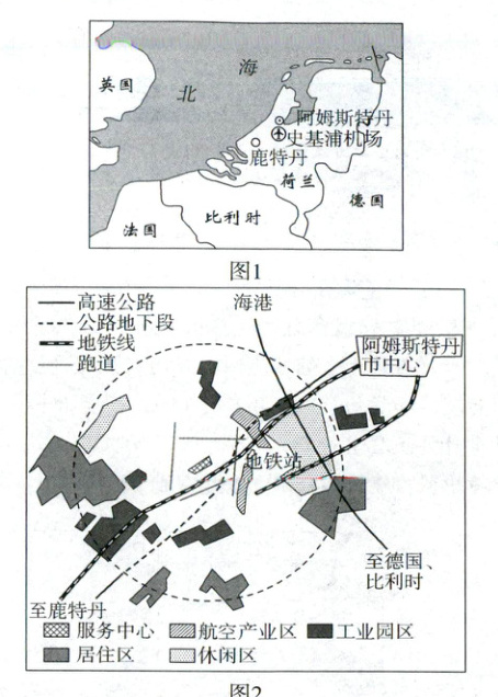 (1) 分析史基浦机场被誉为“欧洲商业界的神经中枢”的原因。(5分)