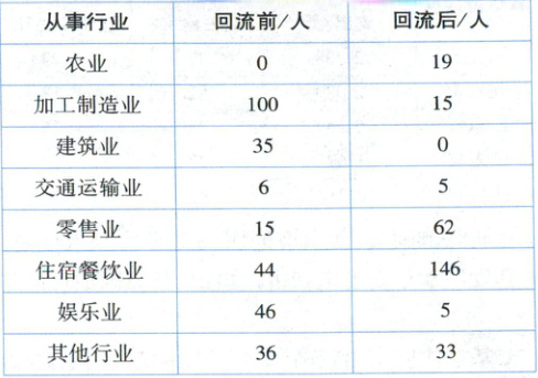 (2)变化:回流人口大多(从加工制造业)转向零售业和住宿餐饮业。(2分)