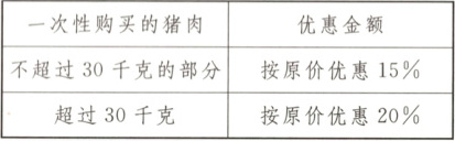 (3)促销期间,某校食堂准备购买 80 千克猪肉,采购员计划了两种购买方案: