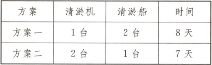 21. 南淝河,古称施水,长江流域巢湖的支流,是合肥的母亲河.为了确保该河道畅通,现需要对一段河道进行清淤处理,清淤任务由两栖反铲式清淤机和小型链斗式清淤船进行.下表是工程队给出的两个工程预备方案,环保部门要求6天内必须完成任务.如果工程部门提供2台清淤机和2台清淤船,共同完成此项任务,那么能否按要求完成任务?