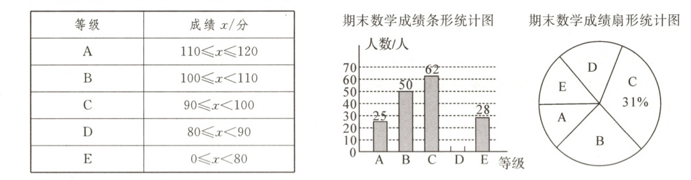 (4) 若成绩不低于110分属于“成绩优秀”,请估计该校七年级2000人中“成绩优秀”的人数.