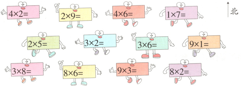 4. 得数大于10的向南走,其余的向西走。算一算,并用箭头标一标。(12分)