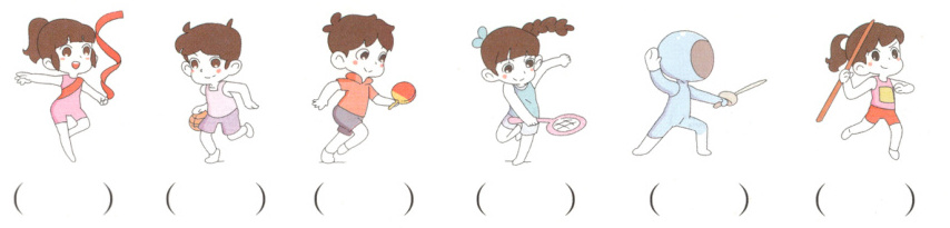 1. 我运动、我健康、我快乐。小朋友分别用哪只手拿器材?(12分)