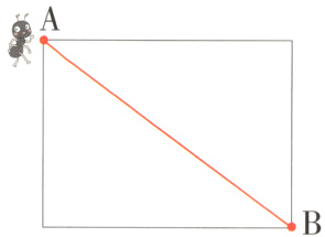 (2)如果小蚂蚁想直接从A点爬到B点,怎样爬路最短?画一画,量一量,这条路长(