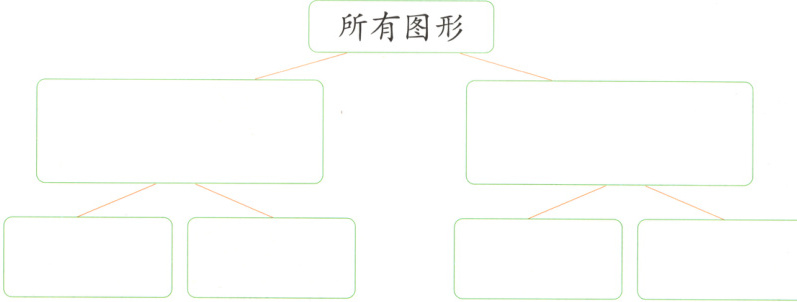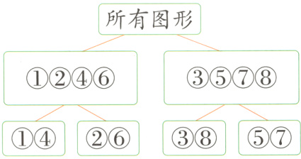 三、(教材改编)把下面的图形分类整理,可以怎么分? 把图形的编号填在合适的位置。