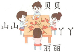 1. 贝贝和 3 个小朋友一起做小旗。