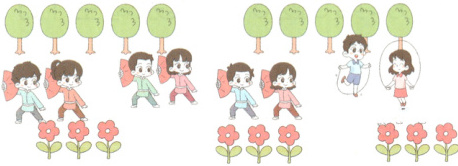 (1)一共有多少棵大树?(4分) (2)一共有多少个小朋友?(4分)