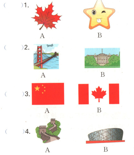 )3. A. It’s red, white and blue.B. It has a red leaf.