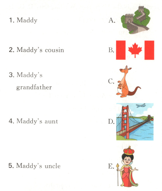 二、Dongdong 正在介绍 Maddy 一家人的情况,听录音并连线。