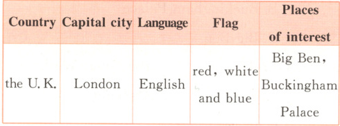 十四、竞赛项目最后一项,根据表格信息向大家介绍英国,你也来试一试吧!