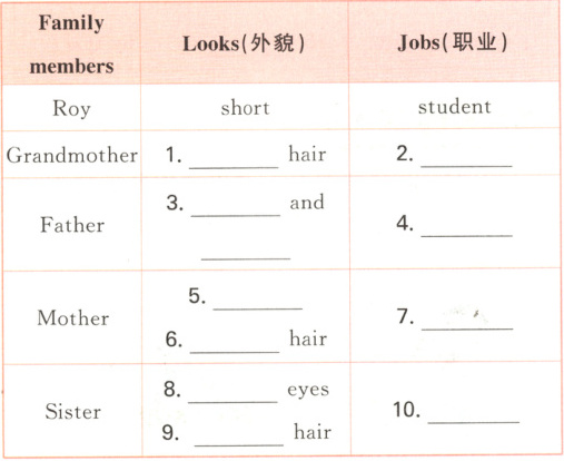 八、新题型·填表格 根据 Roy 的介绍,完成下列表格。