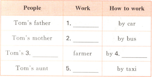 二、新题型·调查报告 Kate 正在做关于职业及上下班方式的调查,下面是 Tom 一家的调查结果。听录音,完成下列表格。