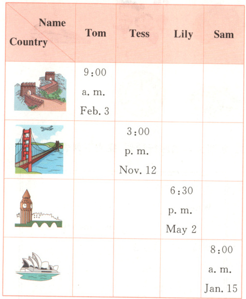 )2. Tess will go to the U. S. at 6:30 in the afternoon.(