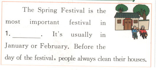 We have a good time during the Spring Festival. On that day, I get up early. Then I put on my new clothes. I brush my teeth and wash my face. After that, I have breakfast with my parents. At noon I always go to my grandparents' house. They give me lucky money. In the afternoon, we make dumplings together. In the evening, we eat dumplings, watch TV and talk. We all love the holiday.