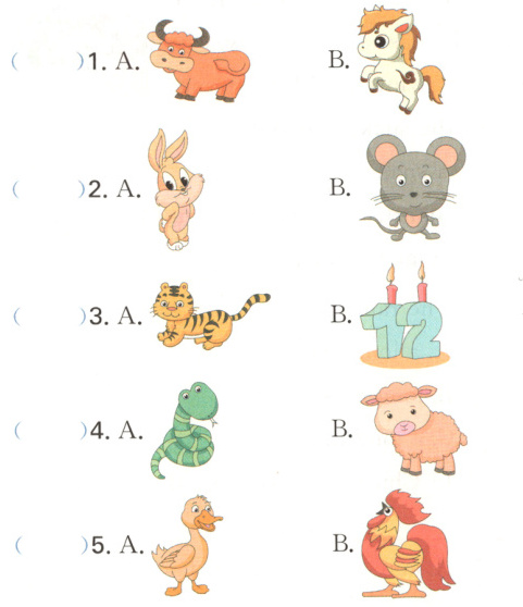三、新角度·生肖文化 快过年啦!十二生肖要依次给大家送上新年祝福。选择正确的动物单词填在横线上并按十二生肖的顺序填上相应的序数词。