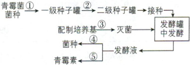 )青霉菌菌种①→一级种子罐②→二级种子罐→接种