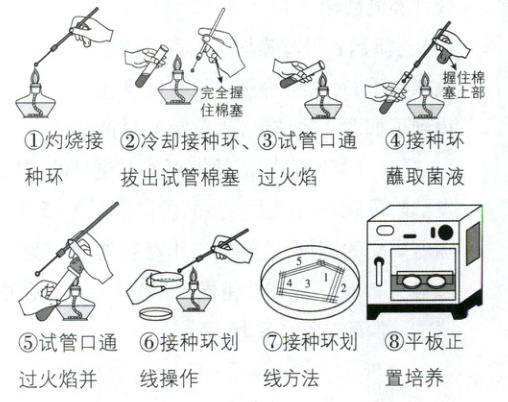 4. [湖南 2024·6]微生物平板划线和培养的具体操作如图所示,下列操作正确的是 (