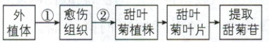 3. [辽宁鞍山 2025 高二期末]甜叶菊为多年生菊科草本植物,所含甜菊苷的甜度是蔗糖的 300 倍左右,现在使用的甜菊苷,就是以甜叶菊的外植体为原料,运用如下现代生物技术提取而成的一种纯天然的热量低、甜度高的新型高档甜味剂。下列叙述正确的是(