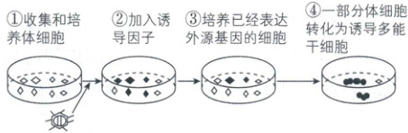 5. [四川乐山 2025 高二期末]据报道,中国首个诱导多能干细胞(iPS 细胞)衍生细胞疗法在治疗帕金森病方面取得了突破性进展。最初,科学家利用病毒载体将四个转录因子基因(Oct3/4、Sox2、c-Myc 和 Klf4,其中 c-Myc 为原癌基因)组合转入小鼠胚胎或皮肤纤维母细胞,成功诱导细胞转化成诱导多能干细胞。这些 iPS 细胞在形态、基因表达、表观遗传修饰状态以及分化能力等方面都与胚胎干细胞(ES 细胞)极为相似。结合下图分析,下列相关叙述错误的是 (