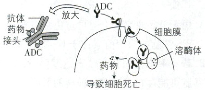 D.ADC 在肿瘤细胞里被溶酶体裂解,释放药物,使肿瘤细胞死亡