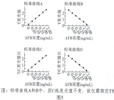 科研人员测定了 T 线、C 线的发光值,从而绘制出特定范围 AFB 浓度的线性标准曲线(如图 5),其中