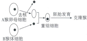 (2)目前核移植技术中普遍使用的去核方法是显微操作法。图中克隆猴的细胞核基因来自B猴的体细胞,因此克隆猴的性状与B猴的性状相似度更高,其体细胞染色体数目与供体猴(B猴)相同。