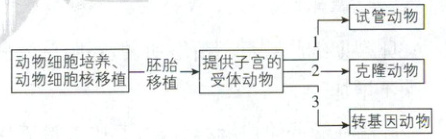 1.D 【解析】哺乳动物的体外受精主要包括卵母细胞的采集、精子的获取和受精等步骤,A正确;在体外受精前,要对精子进行获能处理,从而使精子具有与卵细胞受精的能力,B正确;图中移植的胚胎是通过卵细胞受精得到的,具有雄性和雌性两个供体的遗传物质,C正确;胚胎发育的过程是受精卵→桑葚胚→囊胚→原肠胚,D错误。