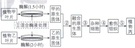 )A.过程①中酶处理的时间差异,原因可能是两种亲本的细胞壁结构有差异
