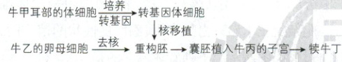 7. [山东 2025·14]利用动物体细胞核移植技术培育转基因牛的过程如图所示,下列说法错误的是(