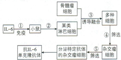 )A.步骤①给小鼠注射 IL - 6 后,应从脾中分离筛选 T 淋巴细胞