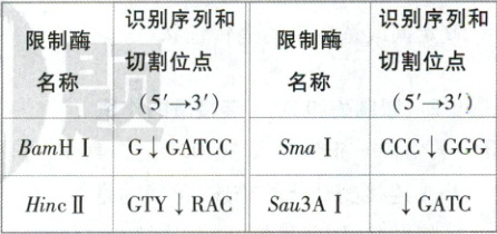 部分学生会错误地认为“一种限制酶只能识别并切割一种序列”“不同的限制酶切割DNA后产生的末端一定不同”。如BamHⅠ和Sau3AⅠ切割后产生的黏性末端相同,而被DNA连接酶连接后的DNA片段能不能再被这两种限制酶切割,则要看连接后的DNA片段能不能被这两种限制酶识别。