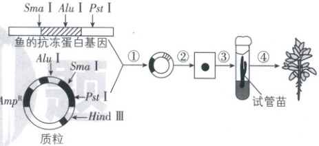 9.A [解析]目的基因两侧分别有限制酶SmaⅠ和PstⅠ的识别序列,且质粒上也含有这两种限制酶的切割位点,所以可同时选用限制酶PstⅠ、SmaⅠ对含目的基因的DNA进行切割,A正确;将目的基因导入植物细胞,常用花粉管通道法或农杆菌转化法,B错误;过程③为植物组织培养,不需要用纤维素酶和果胶酶处理,C错误;过程④中,若利用探针在试管苗细胞内检测到目的基因,不能说明转基因成功,转基因成功的标志是目的基因成功表达并出现相应性状,D错误。