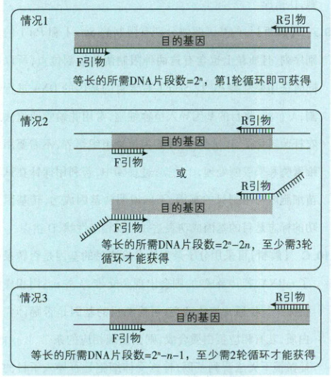 方法总结:根据引物结合的位置,常见PCR可分三类,扩增出目的基因所需的最少循环数可按照下述公式进行计算。