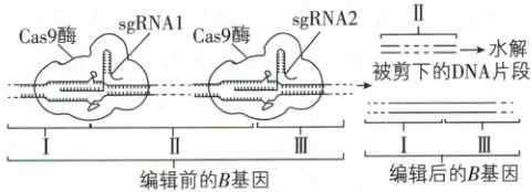 5. [山东青岛2025高二月考]基因编辑是指实现目标DNA片段敲除、置换和插入等操作的技术方法。如图是对某生物B基因进行编辑的过程,该过程中用sgRNA指引Cas9酶(一种能切割DNA的酶)结合到特定的DNA序列。下列相关叙述正确的是(