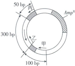 3. [江西宜春一中2025高二期中]目的基因和载体如果用同一种限制酶处理,连接时会出现正向连接和反向连接两种情况,为鉴定筛选出的表达载体中是否含有正确插入目的基因的重组质粒,拟设计引物进行PCR后,结合电泳技术鉴定。图示为甲、乙、丙3条引物在正确重组质粒中的相应位置,其中目的基因为长度300bp的片段。下列有关叙述错误的是(