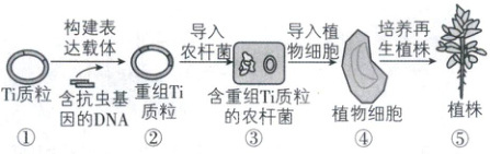 )A.①→②利用两种不同限制酶处理,能避免含抗虫基因的DNA片段自身环化