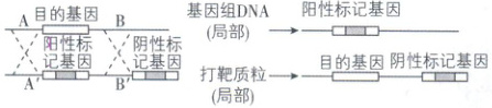 (1)将质粒导入动物细胞常用显微注射法。阳性标记基因替换目的基因的过程属于基因重组(同源重组),图中阳性标记基因替换目的基因,类似于减数第一次分裂前期的染色体互换。