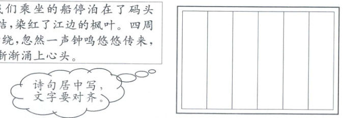 (2) 小州撰写了《乘舟夜游》。读完后,你想起了本学期学过的哪首诗? 请把它工工整整地写下来。(2分)
