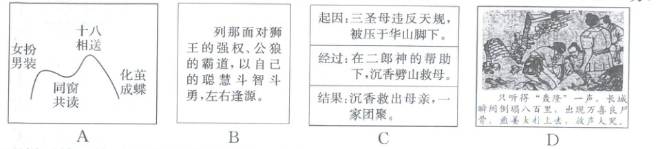 (3)C【解析】本题考查对民间故事的阅读积累。C项“经过”的正确表述应为沉香为救母,历经磨难,刻苦学艺,最终凭借宝莲灯的神力,用巨斧劈开华山,而不是“在二郎神的帮助下”。