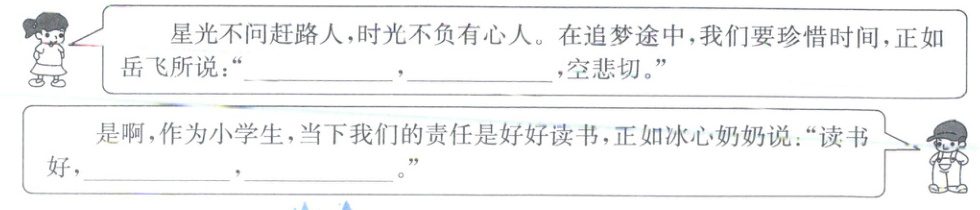 8. (文成县)查阅不少资料后,同学们意识到强国梦的实现还需大家“不负韶华,逐梦而行”,于是,大家围绕此话题展开交流,请你根据提示填空。