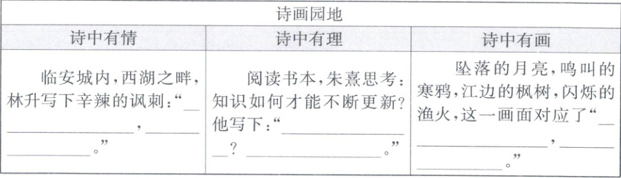(2)小新要布置“诗画园地”,请根据提供的信息,将长廊里的诗句补充完整。