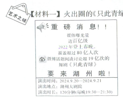 (3)×【解析】本题考查材料内容理解及判断。由材料一“演出时长”可知,演出时间为19:30—21:30,故第
