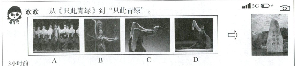 (1) 欢欢的朋友圈中有一张图发错了,不属于舞剧《只此青绿》的是(