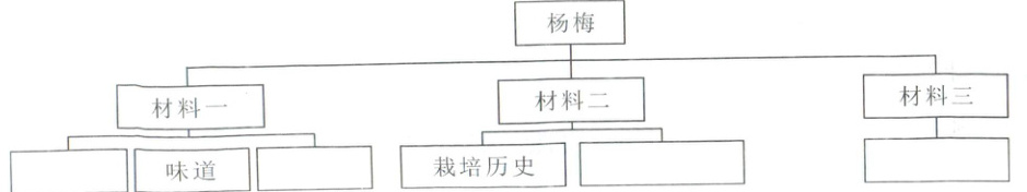 1. 说明性文本可以帮我们认识事物,了解知识。三则材料,分别是从哪几个方面来介绍杨梅的?请填写下图。(4分)