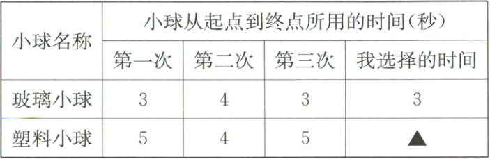 (5)用秒表测试玻璃小球和塑料小球从“过山车”轨道起点 A 到终点 D 所用的时间,如下表: