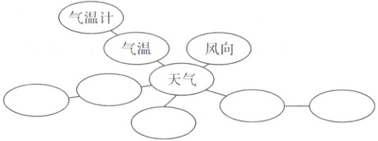 2. 学习天气单元后,我们知道了天气预报需要包含哪些信息,并且也学会了运用相关工具进行观察和测量,请完成下列的气泡图。(5 分)