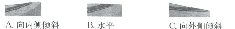 (填“滚动”或“滑动”)。(4)右图方框中的示意图是高速公路上的转弯路段,为了安全快速通过,下列三种设计比较合理的是(