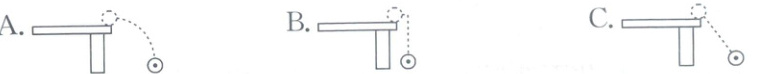 12. 用手将小球在水平的光滑桌面上从一端弹出滚向另一端并冲出桌面,这时看到小球离开桌面后运动路线像图(